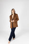 Eleganten blazer iz 100% bombaža z gumbom na hrbtni strani. Prilagodljiv kroj in klasičen dizajn zagotavljata udobje in moderen videz primeren za poslovne ali sproščene priložnosti.