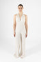 Enodelen denim kombinezon s srajčnim ovratnikom in dolgimi rokavi. Zapiranje z gumbi spredaj in pasom za prilagajanje. Stranski žepi in ravne hlačnice. Klasičen kroj z modernim pridihom. Model nosi številko 34.Material