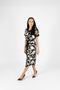 Siva majica s kratkimi rokavi in okroglim ovratnikom. Podložena ramena. Ravni kroj. Model nosi številko S.Material