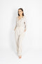 Kavbojke z visokim pasom in ravnimi širokimi hlačnicami. Zapiranje na zadrgo in kovinskim gumbom. Model nosi številko 36Material